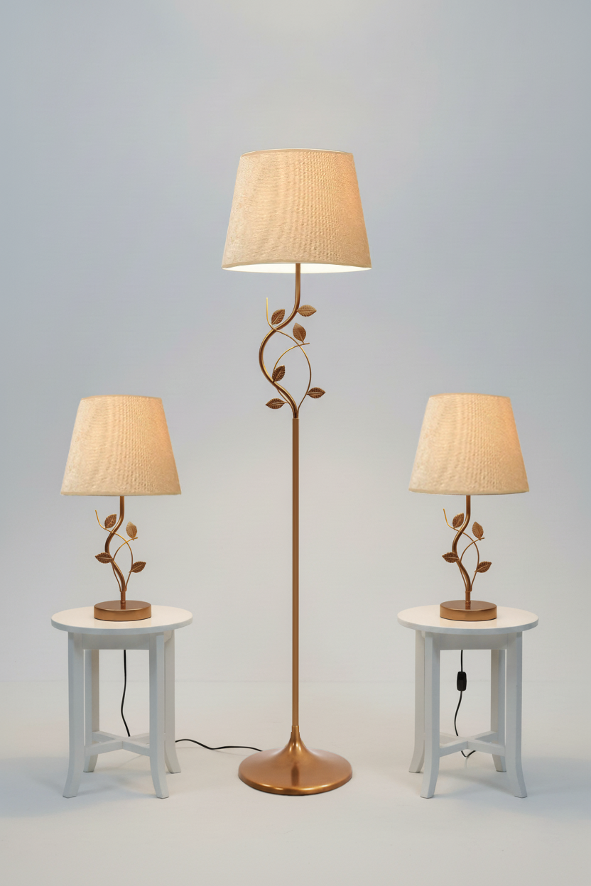 1: Gold iron floor lamp with white shade - 40x150 cm2: Gold metal lamp 45x23 cm